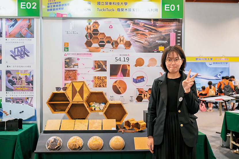 同樣亮眼的還有「能源與環保群」冠軍—屏東科技大學的「TuckiTuck—廢棄木質家具回收再利用」計畫,提出家具纖維板再利用方案,有效提升回收率,落實永續精神。在「生技醫農群」方面,致理科技大學以「AI茶園監控系統」奪冠,整合無人機影像、AI辨識、GIS與病害檢測技術於APP,協助茶農即時掌握作物狀況,提升農業管理效率與商業應用潛力。